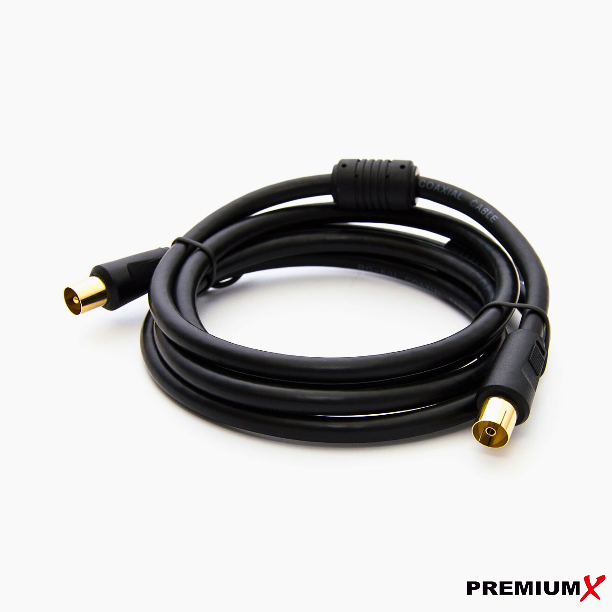 PremiumX 1,5m TV Antennenkabel IEC-Anschlusskabel mit Mantelstromfilter Schwarz