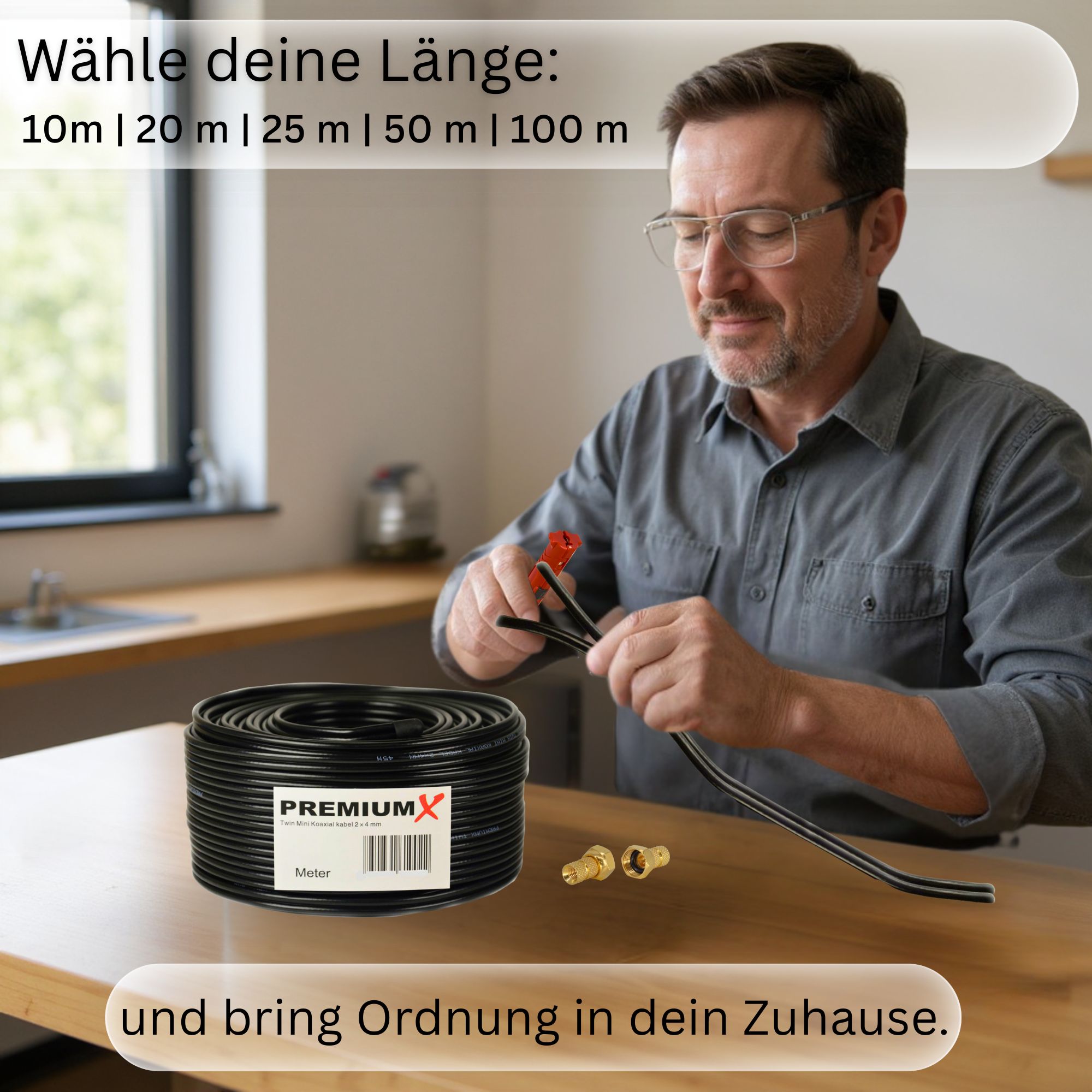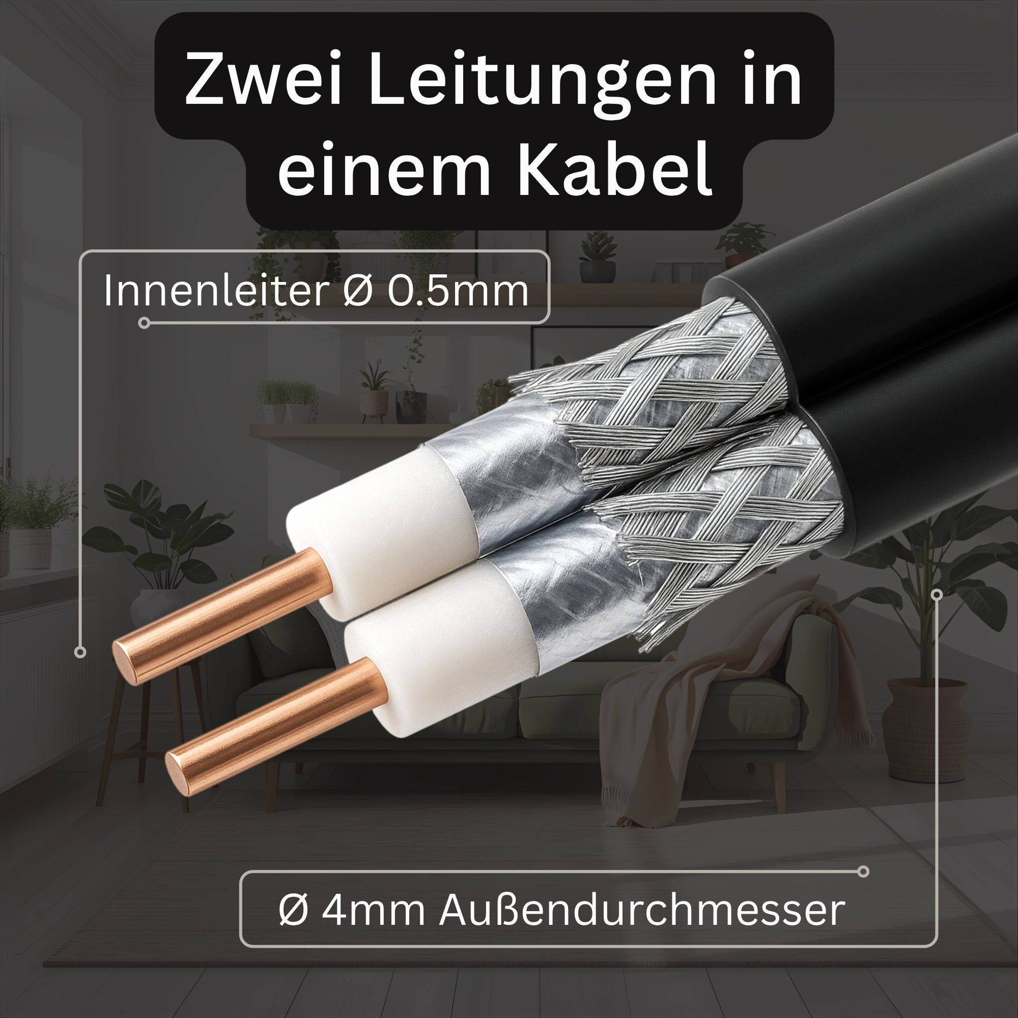- Zwei Leitungen in einem Kabel → Spart Zeit und Energie bei der Installation – ideal für Twin-Receiver oder zwei Anschlüsse gleichzeitig.