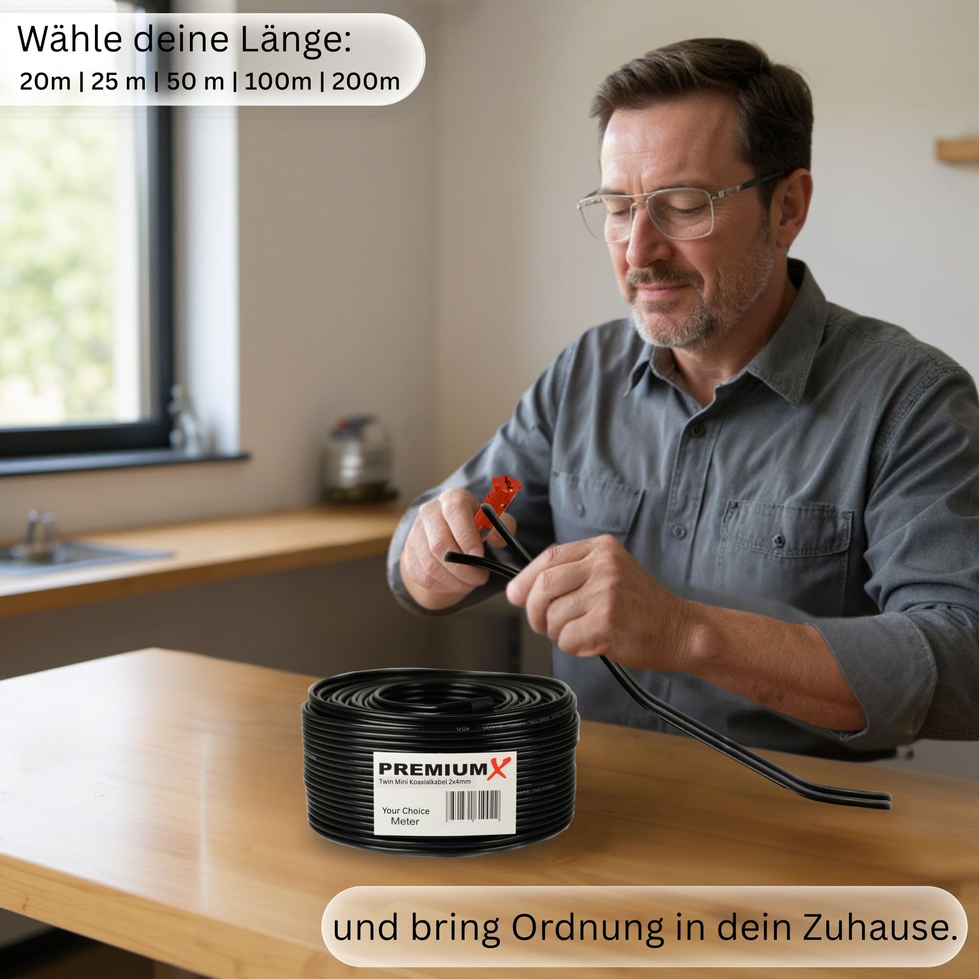 - Zwei Leitungen in einem Kabel → Spart Zeit und Energie bei der Installation – ideal für Twin-Receiver oder zwei Anschlüsse gleichzeitig.