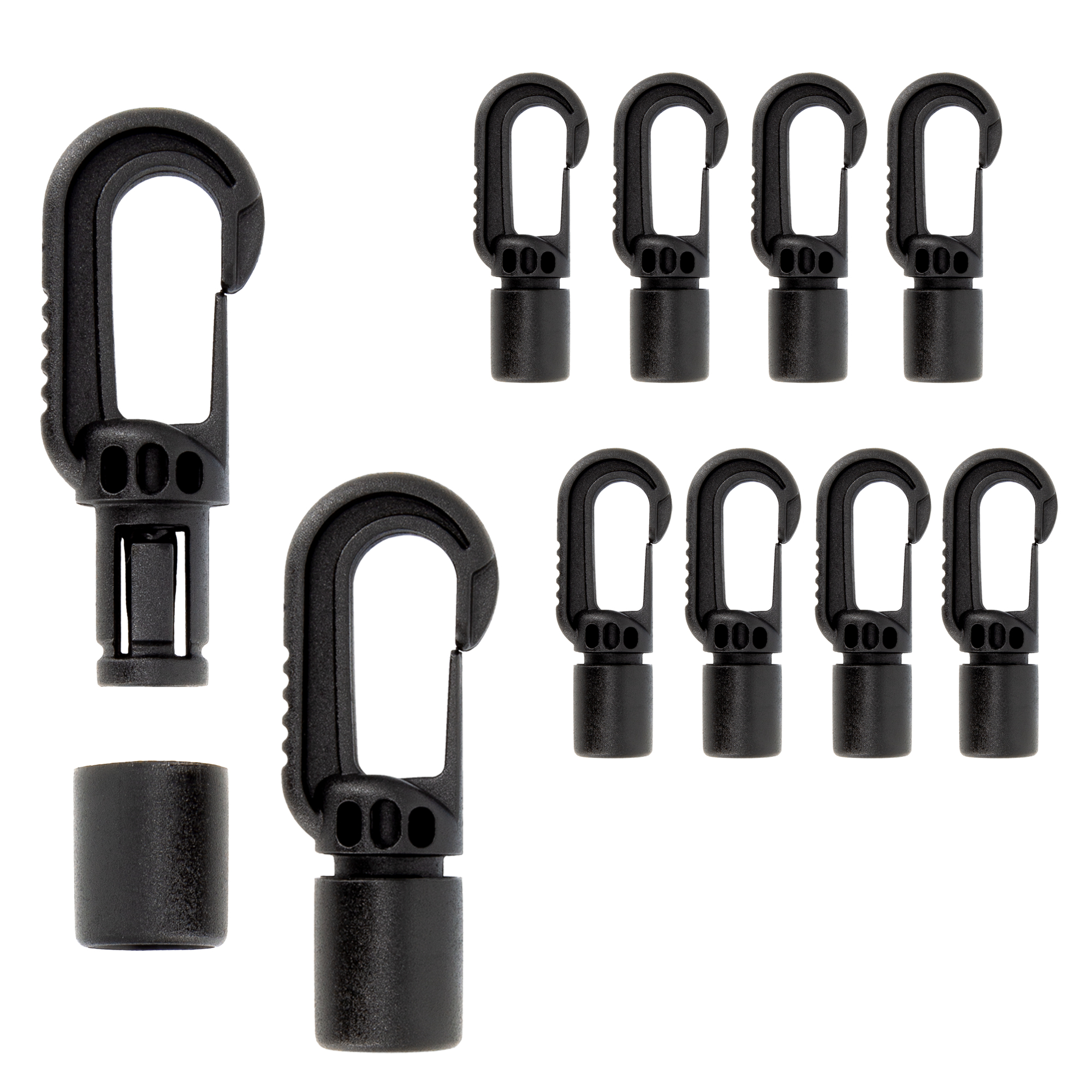 Die Kunststoffhaken sind für Seile und Expanderseile mit einem Durchmesser von 6 mm bestens geeignet. Sie sind robust und haben eine qualitativ hochwertige Ausführung – sie bestehen aus eingegossenem Kunststoff und sind Wiederverwendbar.