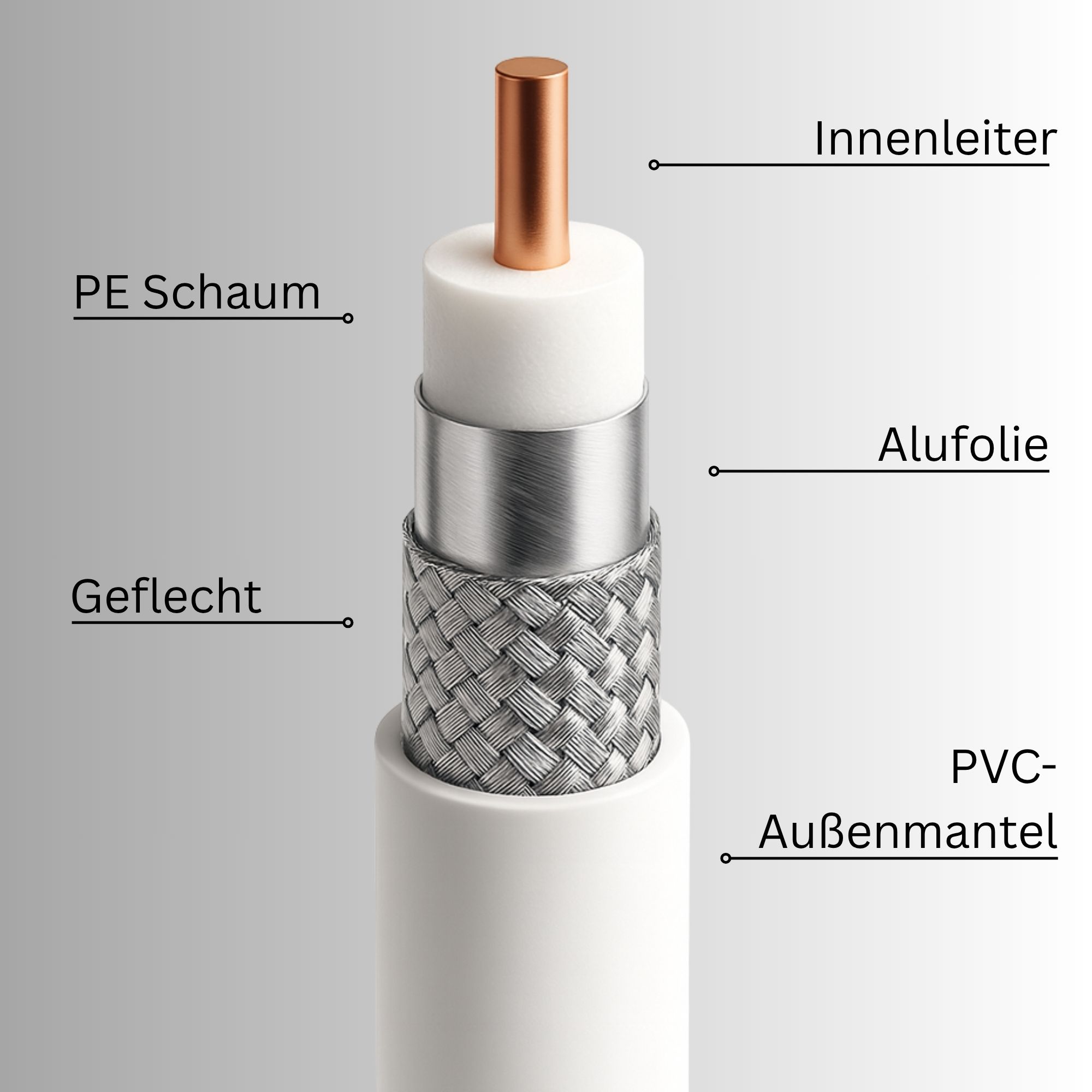 PremiumX 100m Mini Koaxial Sat Kabel 4mm Weiß Koax Antennenkabel 2-fach geschirmt