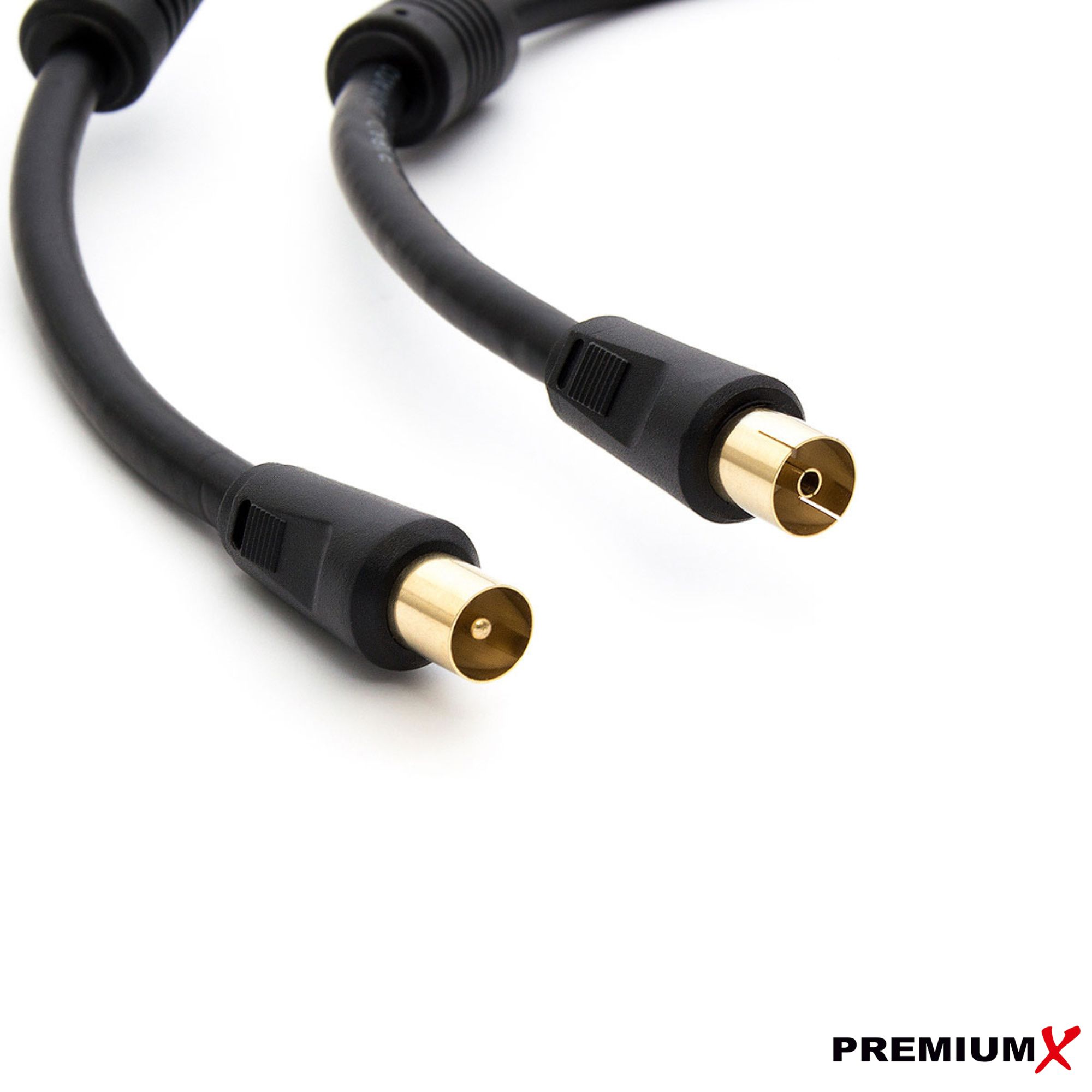 PremiumX 2,5m TV Antennenkabel IEC-Anschlusskabel mit Mantelstromfilter Schwarz