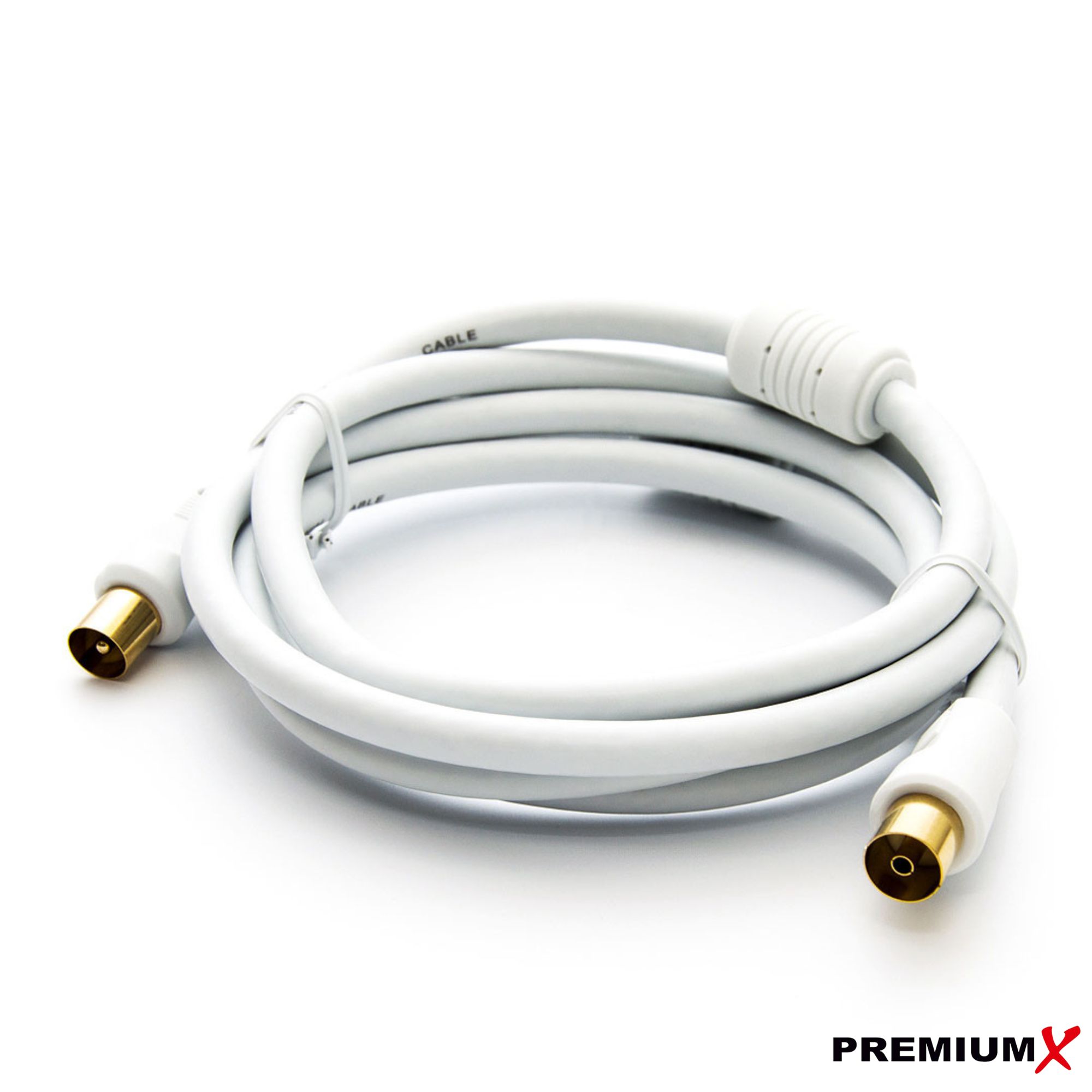 PremiumX 2,5m TV Antennenkabel IEC-Anschlusskabel mit Mantelstromfilter Weiß