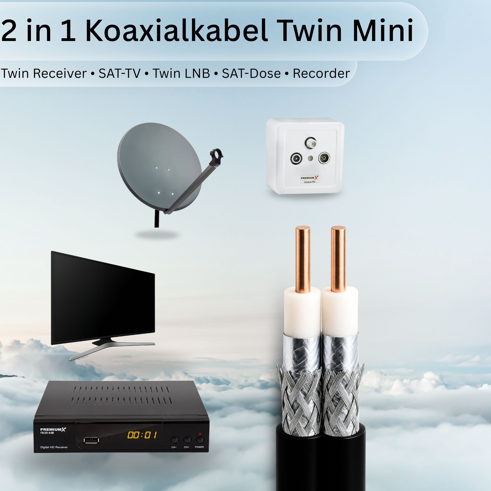 - Zwei Leitungen in einem Kabel → Spart Zeit und Energie bei der Installation – ideal für Twin-Receiver oder zwei Anschlüsse gleichzeitig.