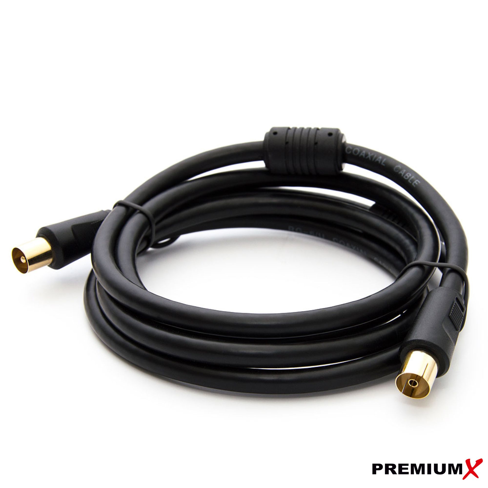 PremiumX 3m TV Antennenkabel IEC-Anschlusskabel mit Mantelstromfilter Schwarz