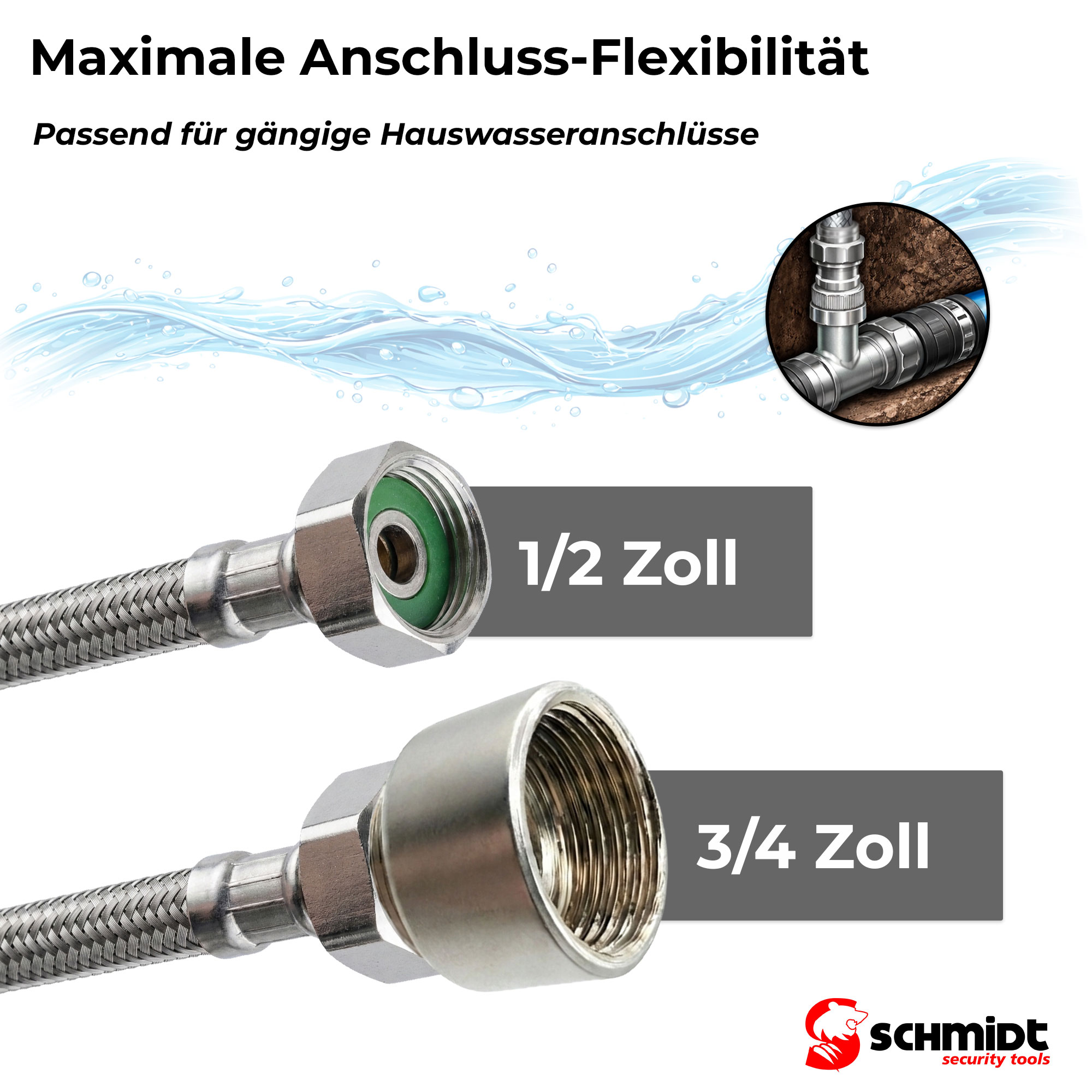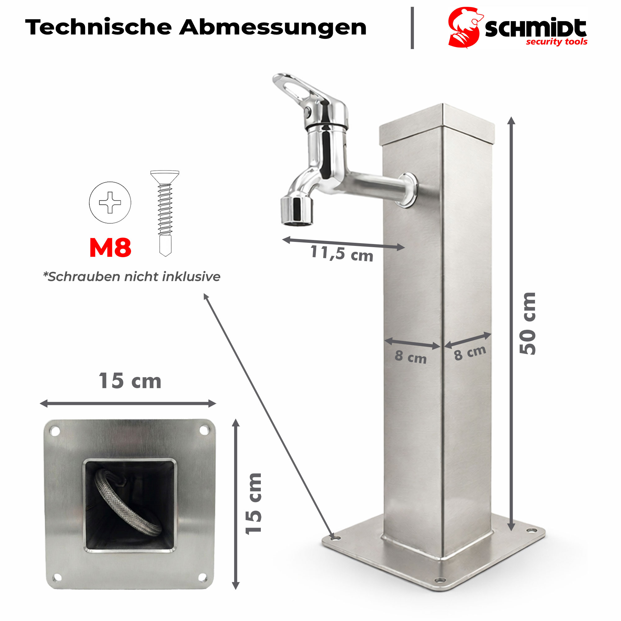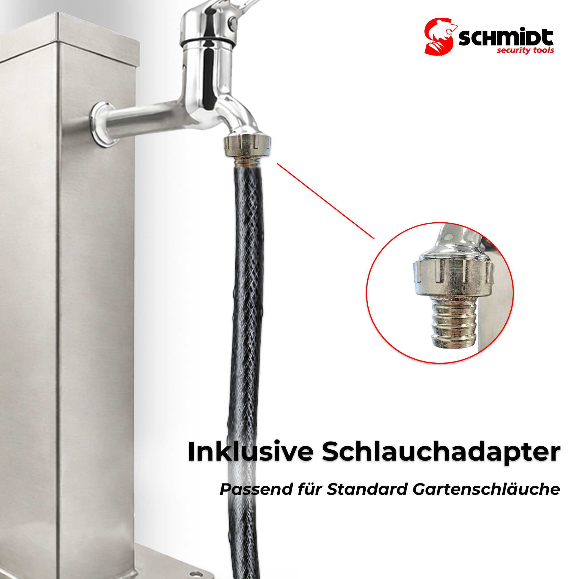 SCHMIDT security tools Wassersäule Edelstahl 50 cm mit 1/2 & 3/4 Zoll Adapter