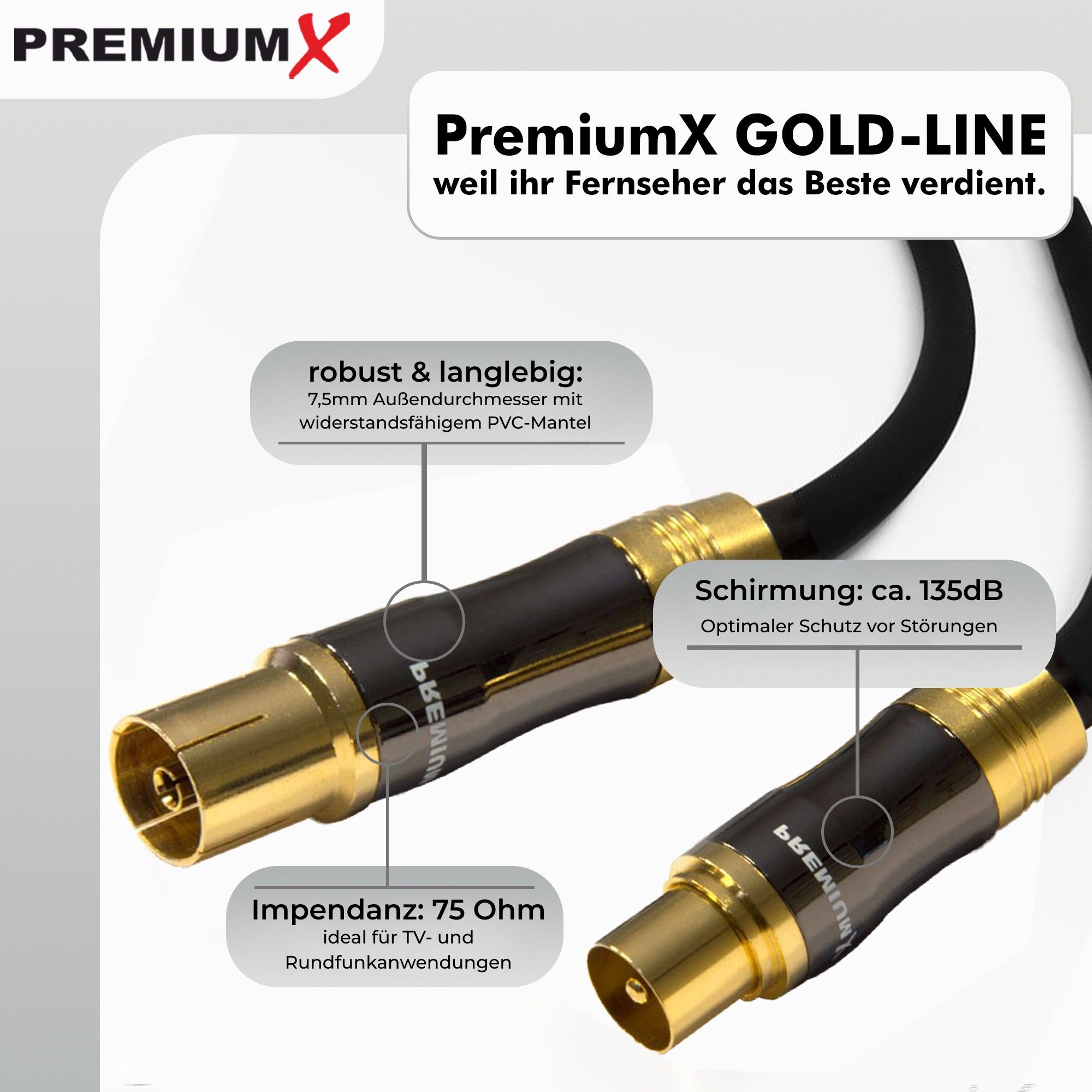 PremiumX GOLD-LINE TV Antennenkabel Schwarz – IEC Stecker auf IEC Kupplung
