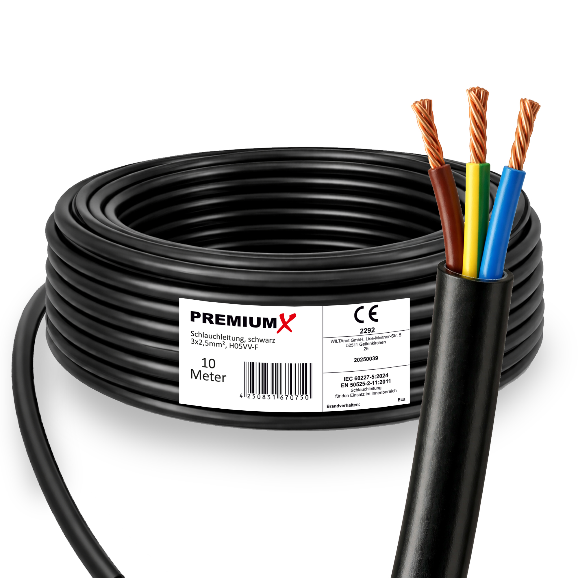 PremiumX Schlauchleitung H05VV-F 3x2,5 mm² 10 Meter flexible Anschlussleitung PVC