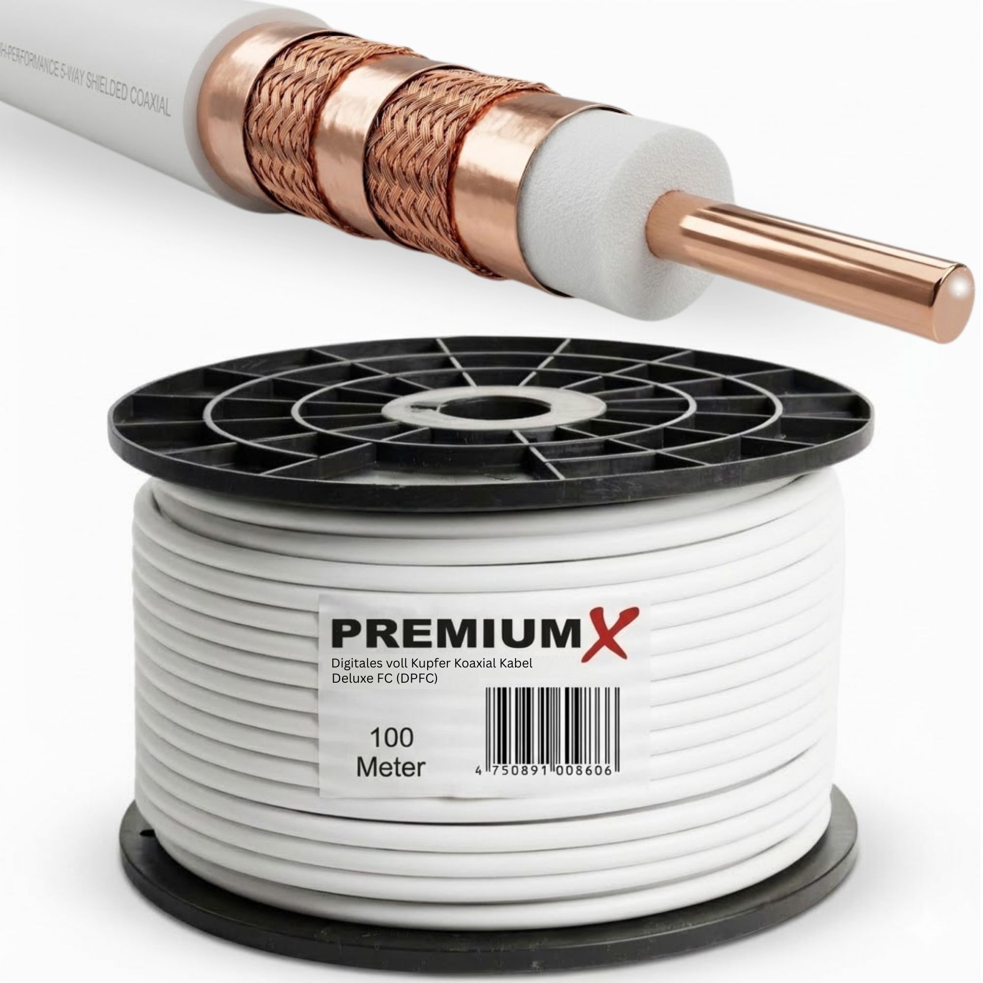 PremiumX DELUXE PRO REINES KUPFER 100% VOLLKUPFER Koaxialkabel 135dB 5-Fach geschirmt 100m 100 Meter SAT Antennenkabel NEU