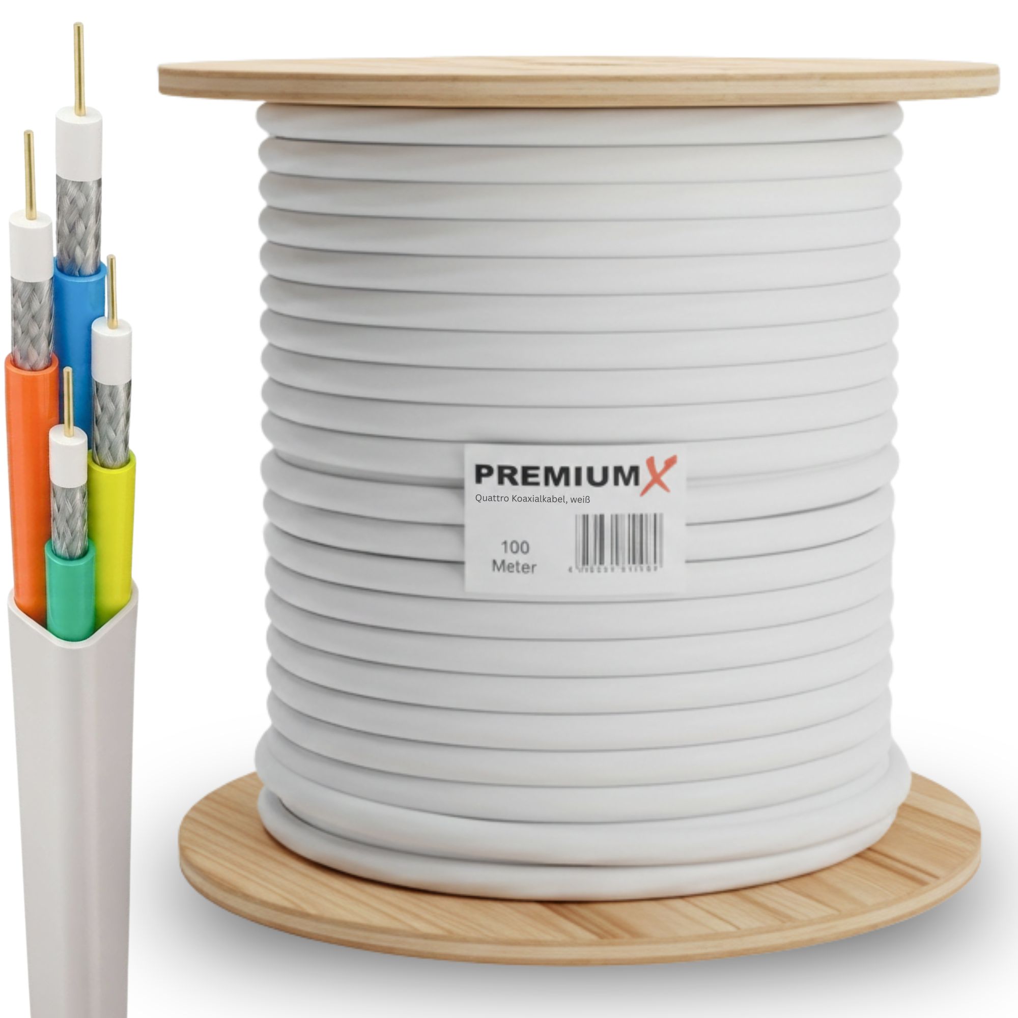 PremiumX 100m Basic Quattro Koaxial SAT Kabel 90dB 2-Fach geschirmt Weiß