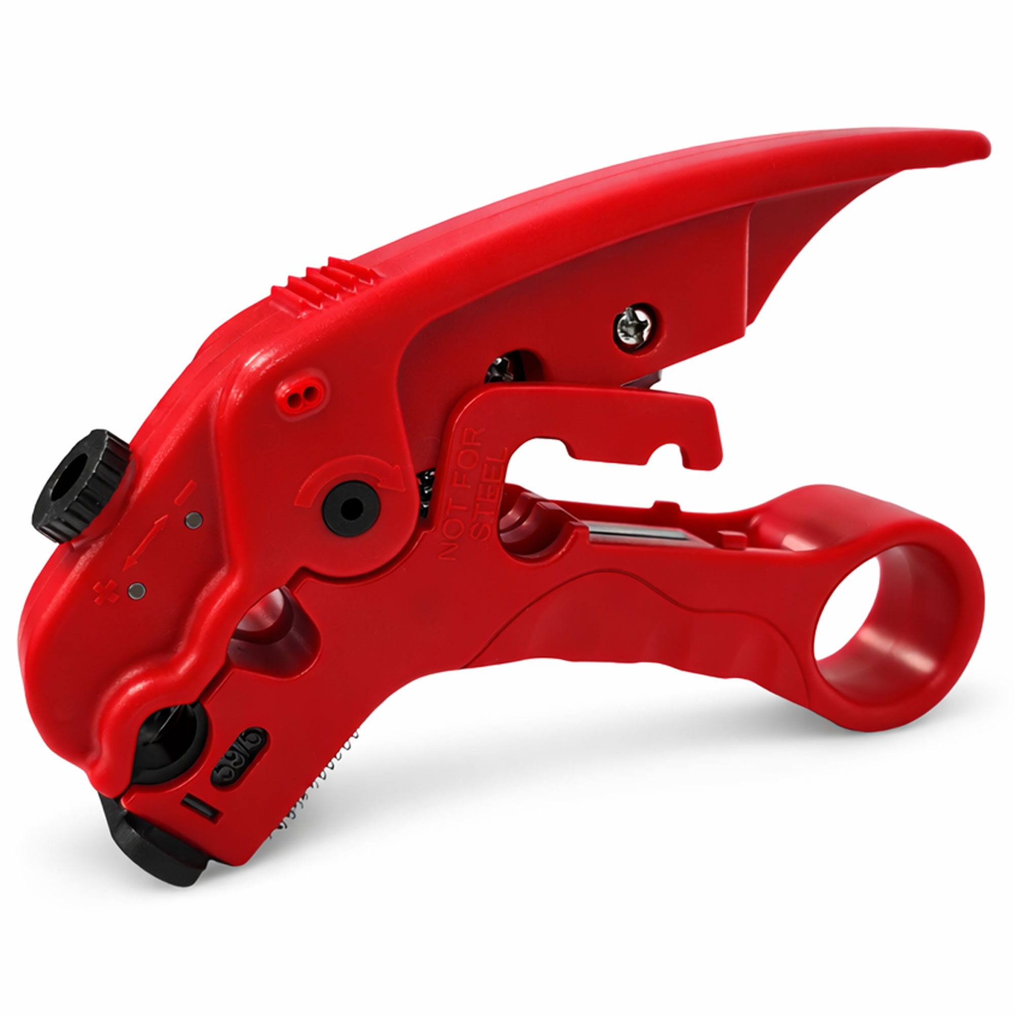 Die Abisolierzange verfügt über feste Klingenlängen für bestimmte Kabel wie Koaxialkabel RG59/6 oder RG7/11, aber auch über verstellbare Klingenlängen, die sie zu einem passenden Werkzeug für jedes Kabel machen. Der drehbare Kopf ermöglicht die Verwendung des Werkzeugs für RG59 und RG6 Koaxialkabel sowie für RG7 und RG11 Kabel.