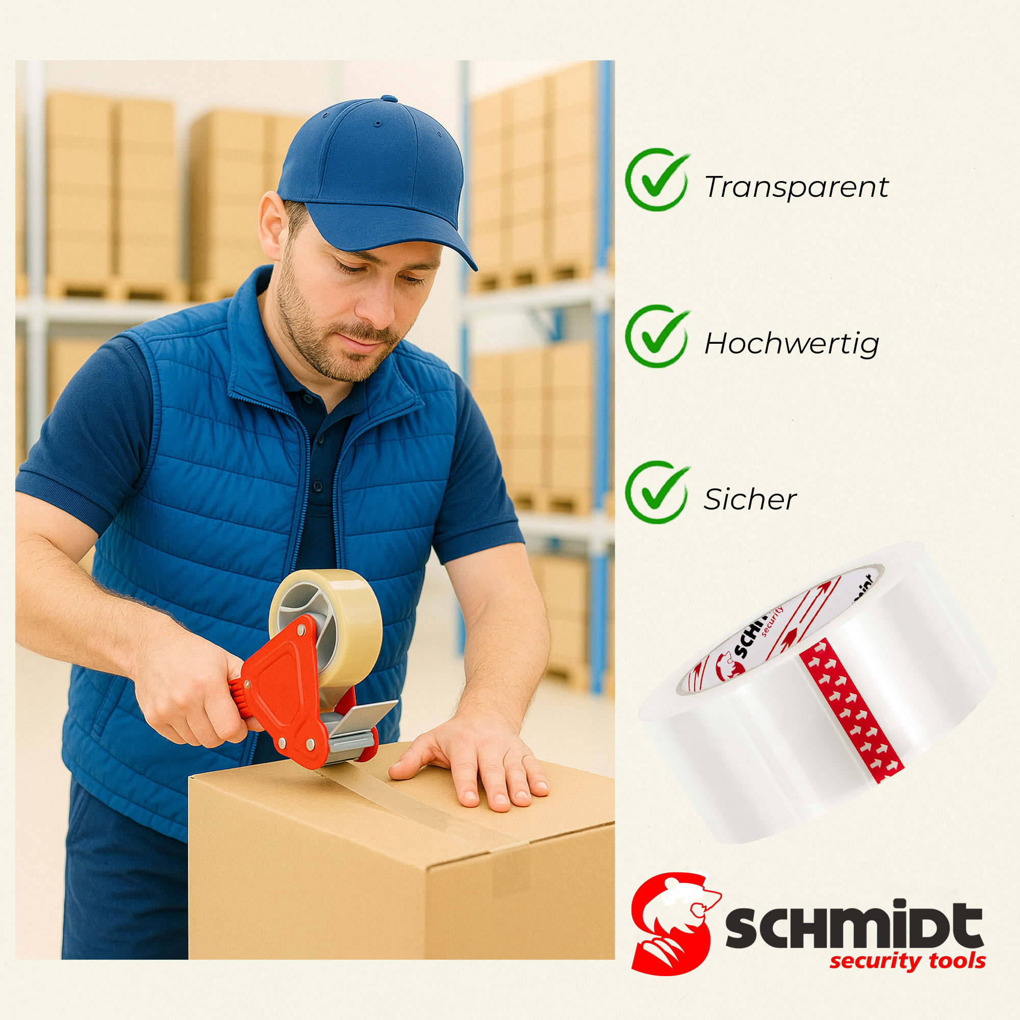 SCHMIDT security tools 36 Rollen Klebeband 100m 48mm 45my Transparent