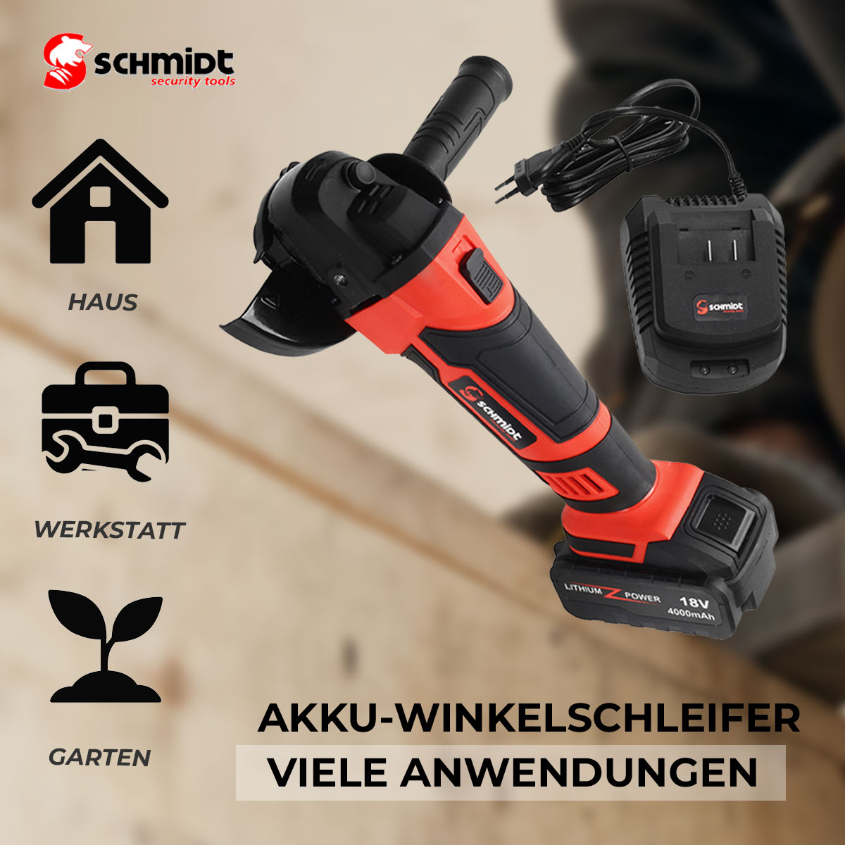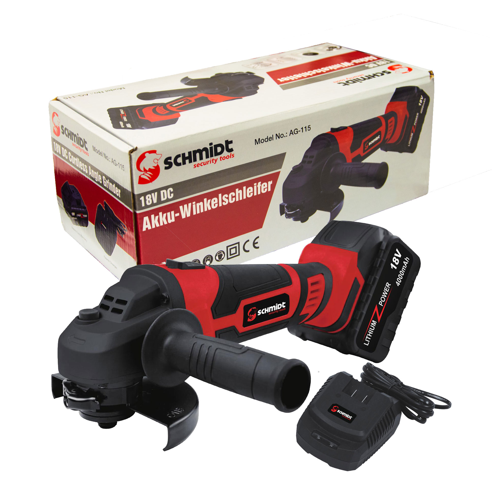 SCHMIDT security tools Akku-Winkelschleifer AG-115 Trennschleifer Akku Ladegerät