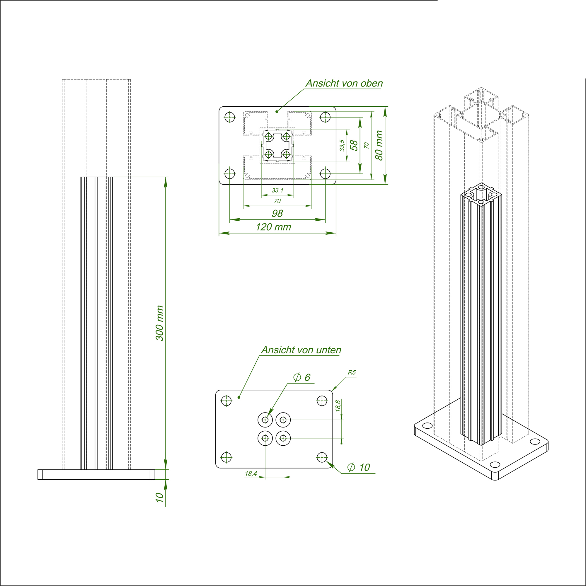 Grundplatte Maße (LxBxH): 120x80x10 mm