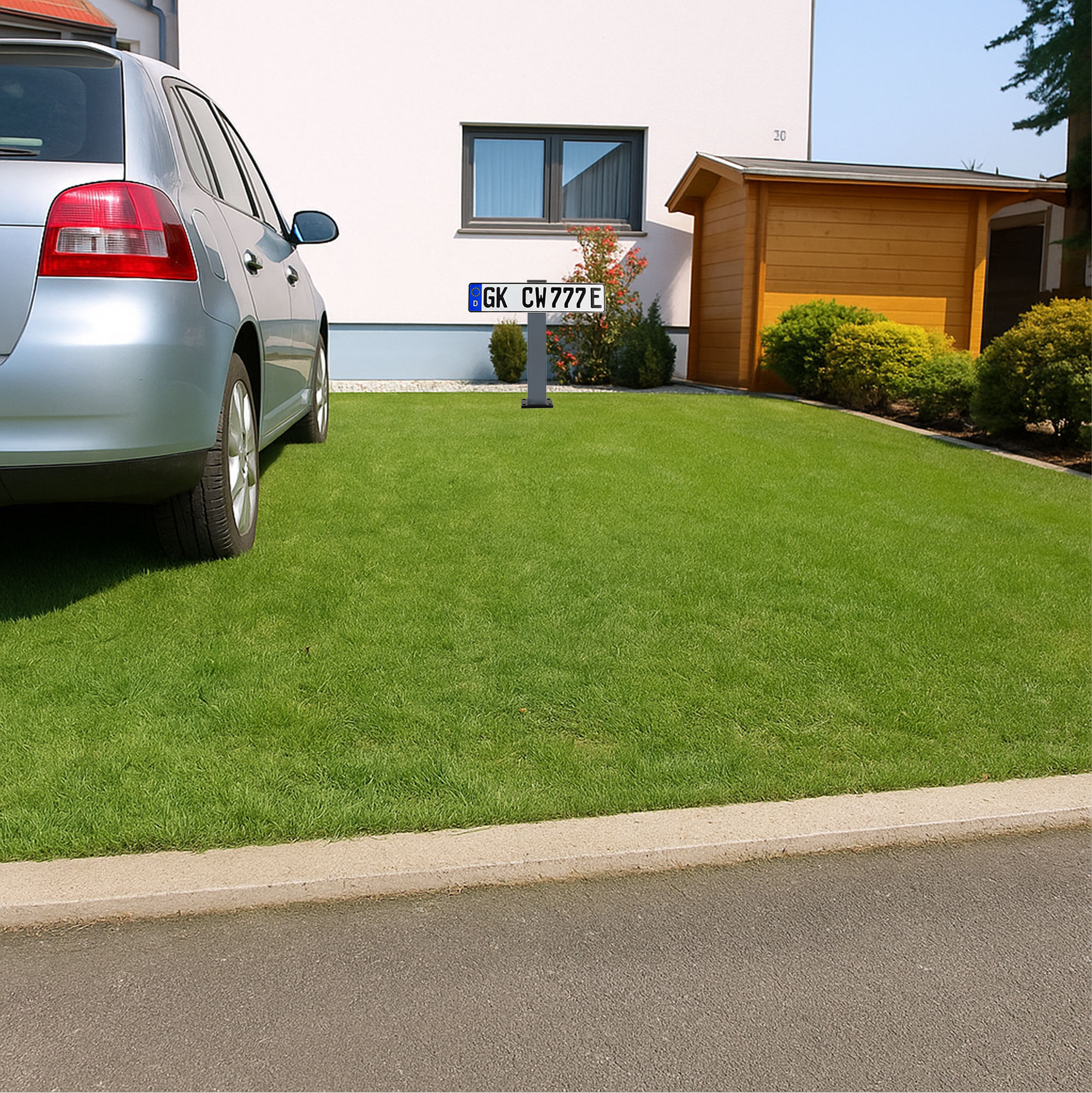 Der hochwertige Aufstellpfosten aus pulverbeschichtetem Aluminium in modernem Anthrazit (RAL 7016) überzeugt durch massive Qualität und Design. Ideal als Nummernschildhalter für Privatparkplätze oder zur Kennzeichnung von E-Ladesäulen, wo eine niedrige Bauhöhe gewünscht ist.
