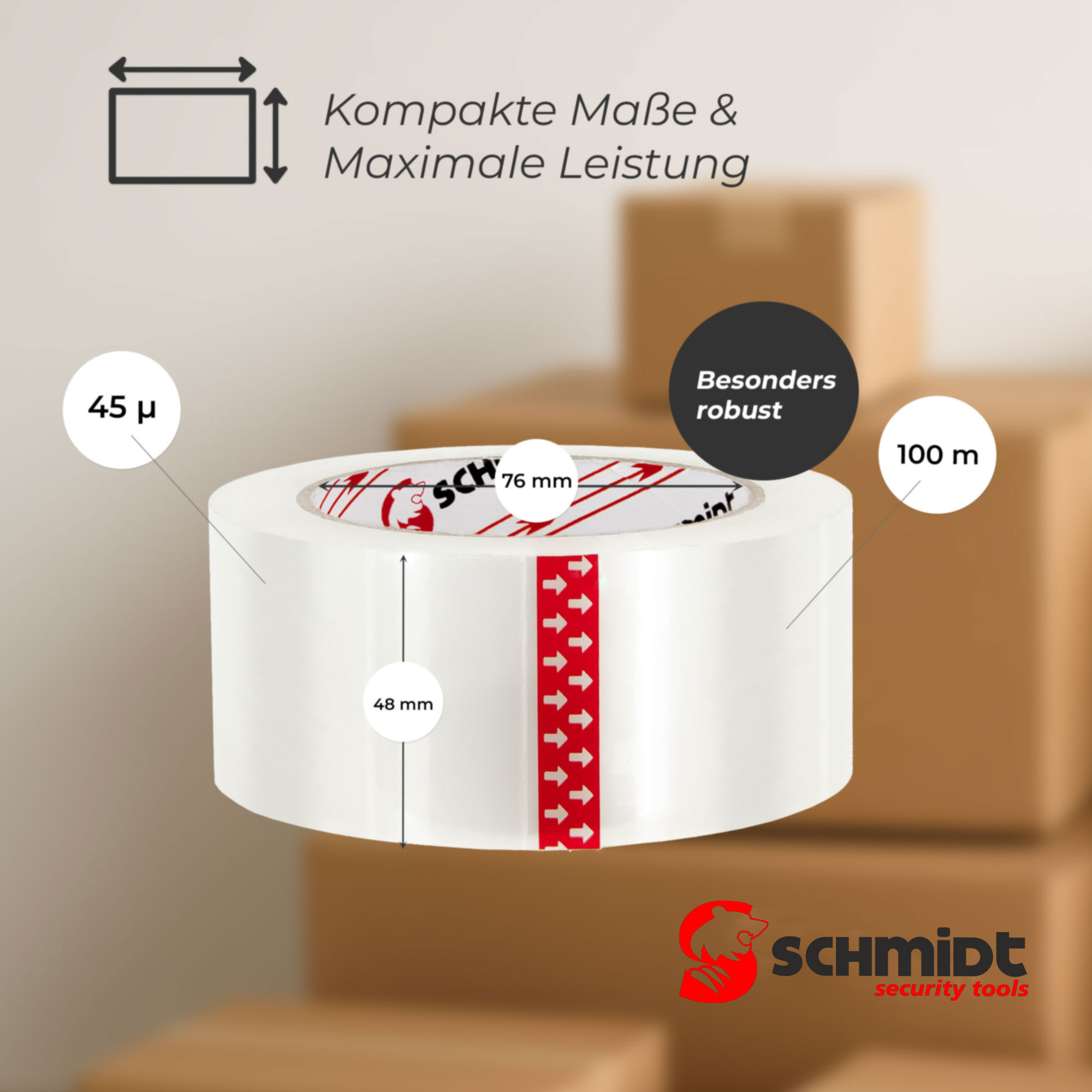 SCHMIDT security tools Klebeband 100m 48mm 45my Transparent Packband